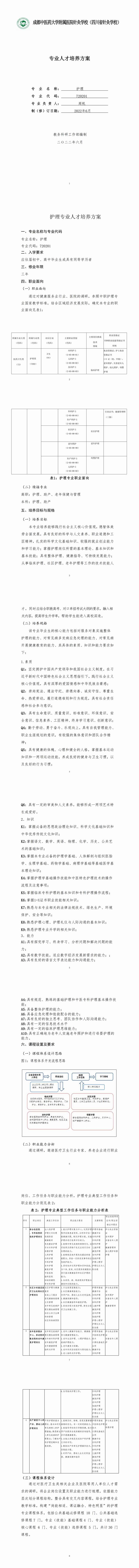 成都中医药大学附属医院针灸学校(四川省针灸学校)护理专业人才培养方案