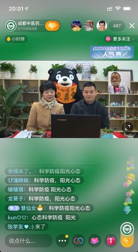 直播以“科学防疫、阳光心态”为主题,从“面对目前疫情形势可能出现的身体、情绪、认识的变化;应对这些变化的心理调控策略;持续2周没有缓解该如何获得帮助”三个方面进行心理辅导。同时,直播还邀请到学校合作企业“至真堂中医馆”专家张跃群医生到现场,讲解防疫汤药的八味中药及日常生活中常见病(如感冒、腹泻、头痛等)的中医药治疗和养生保健方法。