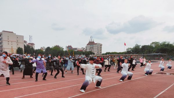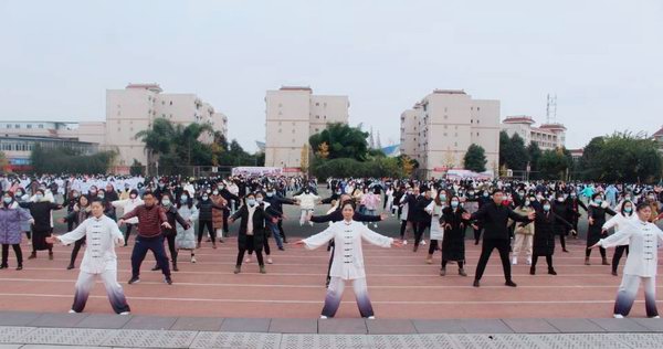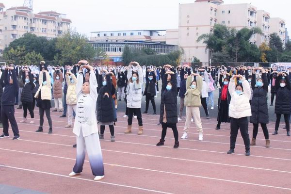 12月19日下午,我校运动抗疫—健身气功八段锦展示活动在学校操场开展。学校党委书记、常务副校长张美林,副书记、纪委书记肖旭等在家校领导出席活动,并与800余名师生代表共同参与展示。