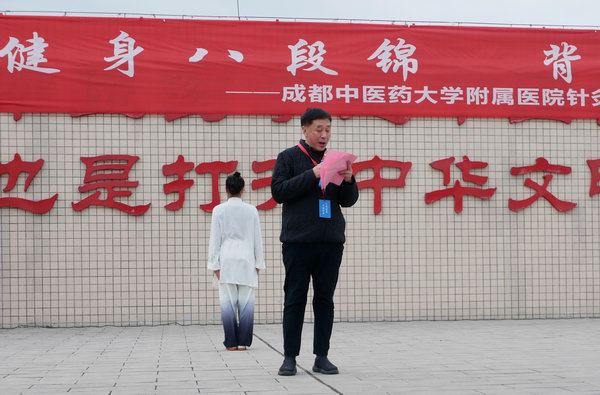 肖旭在致辞中表示:健身气功八段锦以其独特的优势在新冠肺炎疫情防控期间,成为居家隔离锻炼和新冠肺炎病员康复锻炼有效方法。希望我校的健身功法八段锦教学在疫情防控中,帮助学生增强体质、锤炼意志。