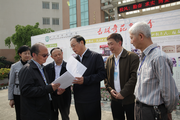 2015年 原国家卫计委副主任、国家中医药管理局局长王国强,省人大副主任陈文华(原副省长)一行到我校调研视察中医药职业教育工作