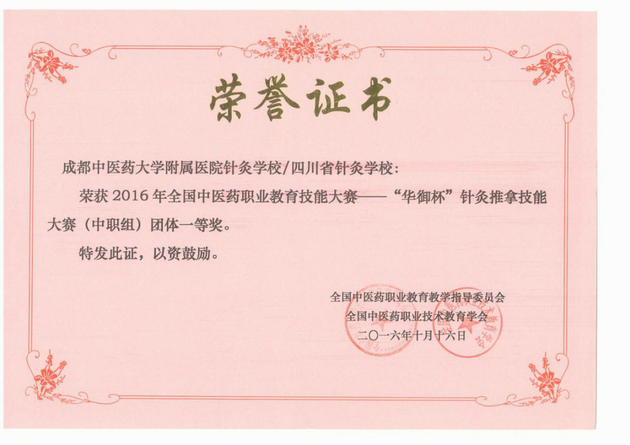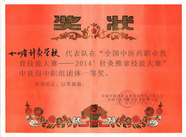 2014年-2016年 连续两届获全国中医药职业教育技能大赛“团体一等奖”