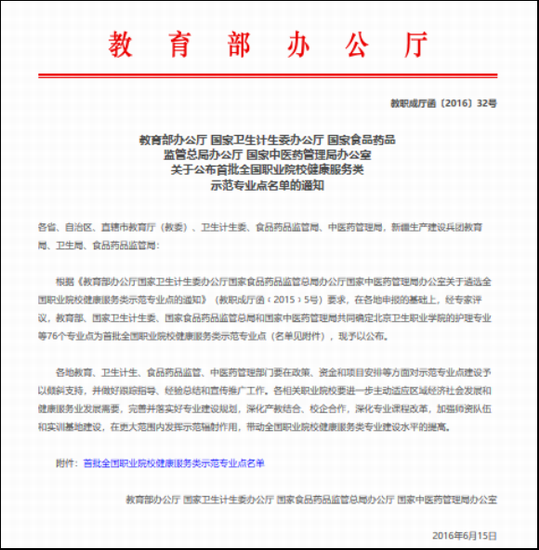2016年 中医康复保健专业被确定为首批全国职业院校健康服务类示范专业