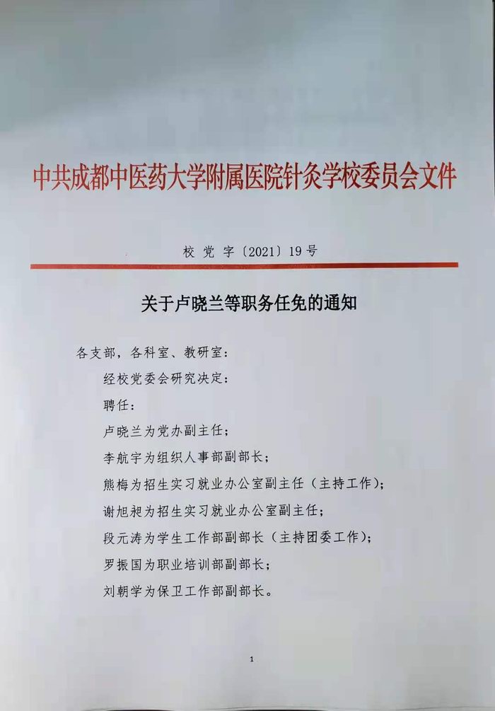 关于卢晓兰等职务任免的通知