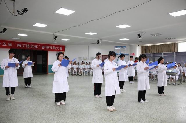 大赛在庄严的国歌声中拉开序幕。李前华副校长在致辞中表示:“南丁格尔杯”护理技能大赛的举办,是学校贯彻落实习近平总书记对职业教育工作重要指示和《国家职业教育改革实施方案》的具体体现,是促进和推动我?;だ碜ㄒ抵耙到逃萄Ц母锏闹匾ナ?。人人出彩,技能强国,希望我?;だ硌ё幽艽?、坚守、升华南丁格尔精神,为推动护理技能高质量发展做出新的贡献。