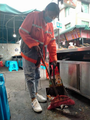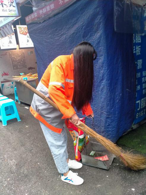 协助环卫工人打扫卫生