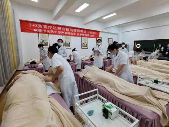 2021年11月20日,教育部“1+X”芳香疗法(初级)职业技能等级证书在成都中医药大学附属医院针灸学校考核站点开考,这是我校作为“1+X”芳香疗法职业技能等级考核站点的首场考试,共50名学生参加了考试。受培训评价组织北京易芳堂科技发展有限公司委托,学校副校长李前华担任督导人员督导考评工作。