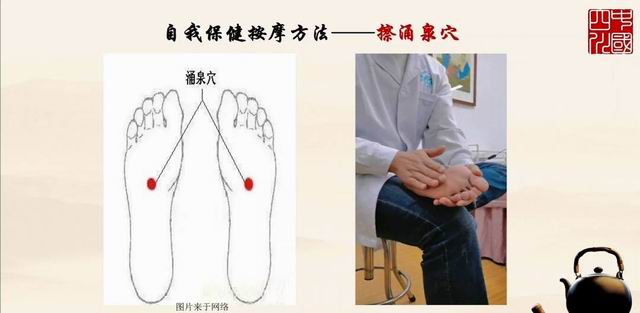 涌泉穴是足少阴肾经的起始穴,擦涌泉穴可以起到醒脑开窍、补肾聪耳的作用。将左(右)下肢平放在对侧膝上,用右(左)手掌心贴于涌泉穴上,反复搓擦30-50次,以发热为度,双脚交替进行。擦涌泉穴既能缓解身体疲劳,让我们的身体充满活力,肾气充足。又能强体质、健腰膝,起到延年益寿、美容养颜的功效。此法简便易行,适合疫情居家自我锻炼。