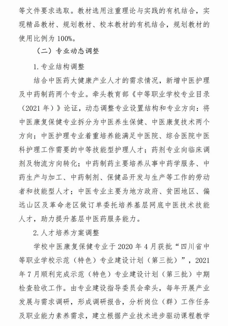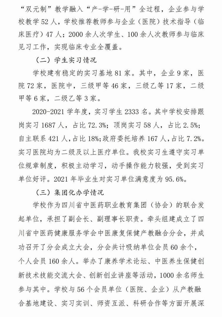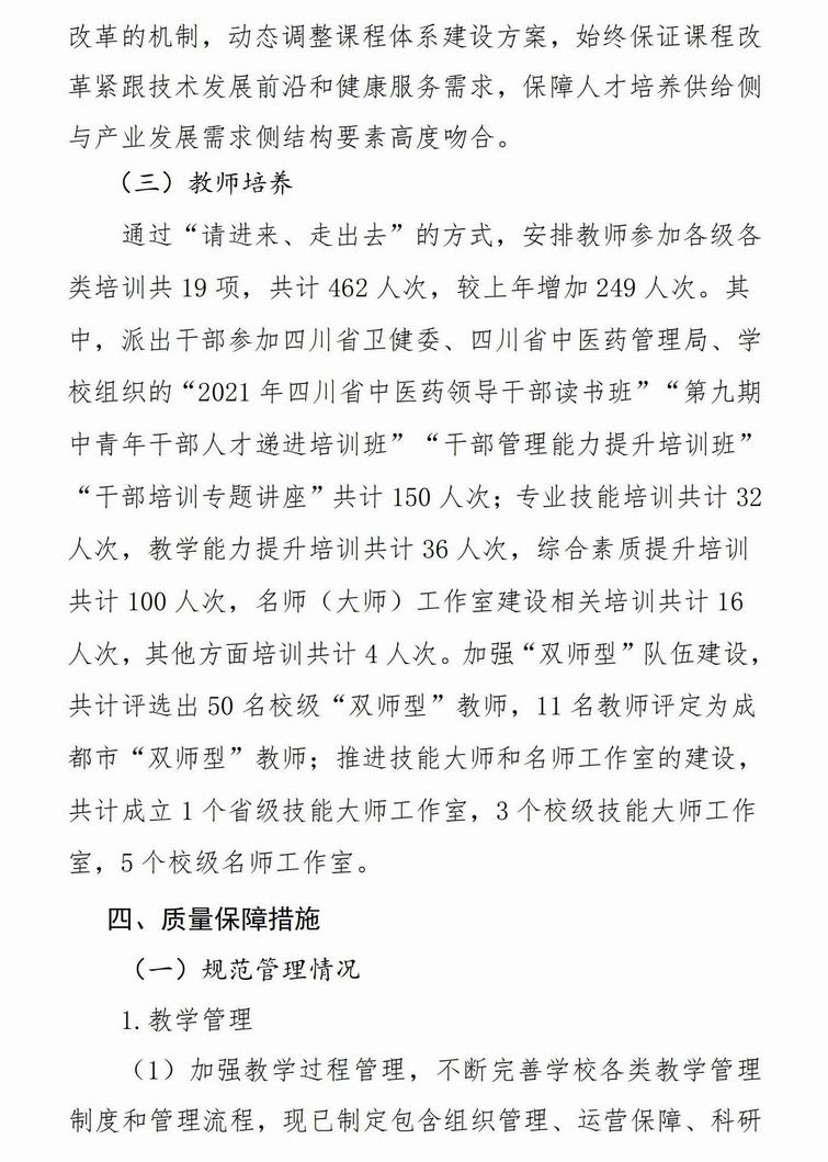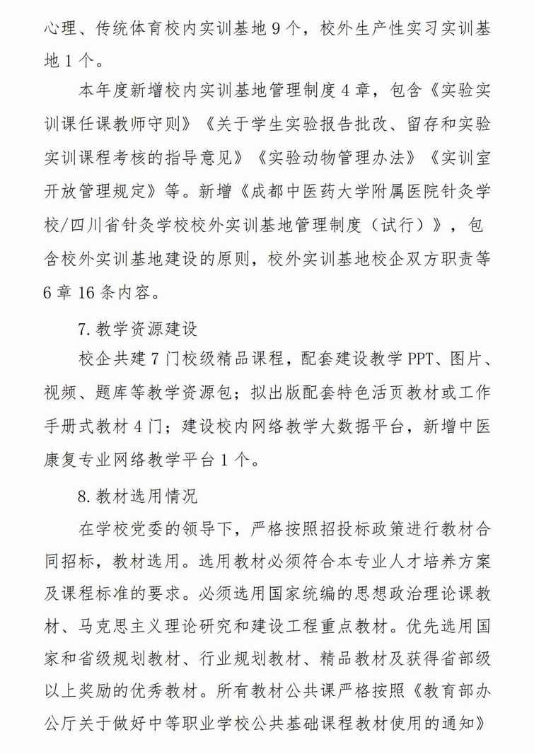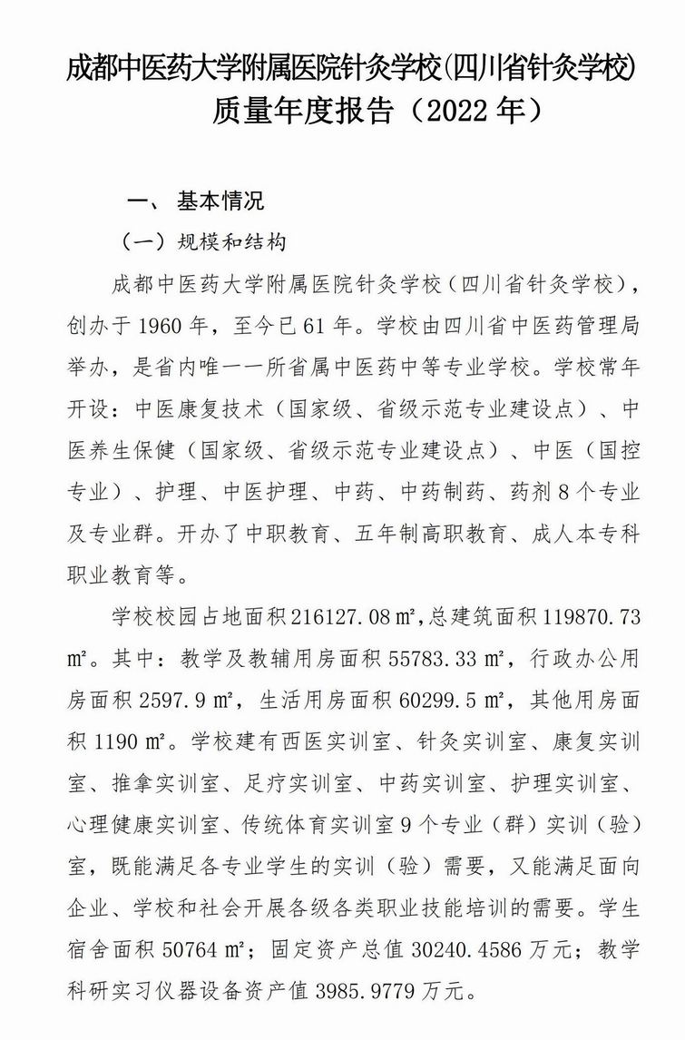 成都中医药附属医院针灸学校(四川省针灸学校)质量年度报告(2022年)