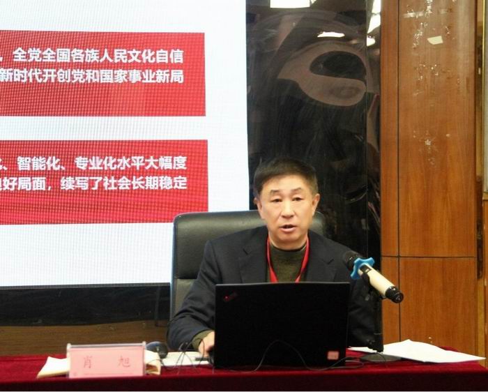 会上,肖旭紧紧围绕“以习近平法治思想为指引, 坚定不移走中国特色社会主义法治道路”主题,带领与会人员共同学习了《中国共产党第十九届中央委员会第六次全体会议公报》和《中共中央关于党的百年奋斗重大成就和历史经验的决议》,从“宪法的基本知识、宪法的发展历程、宪法的基本内容、宪法赋予公民的权利和义务、青年教师和学生怎样守法用法”五大方面,向与会者进行了宣讲。