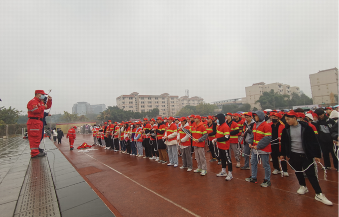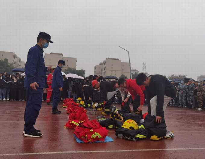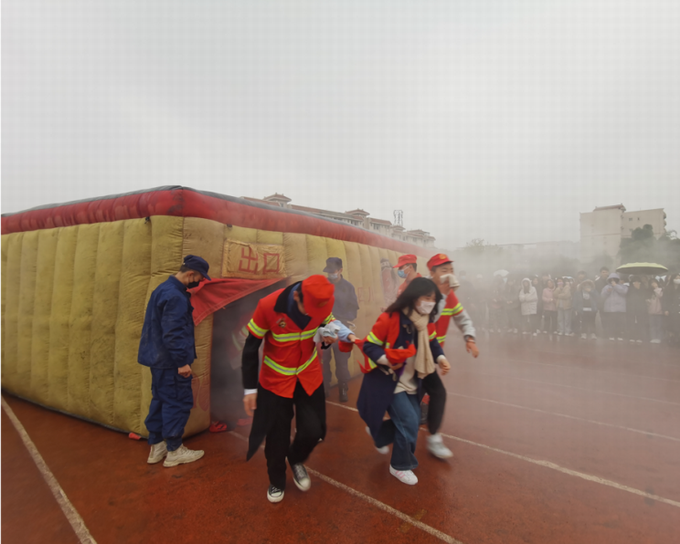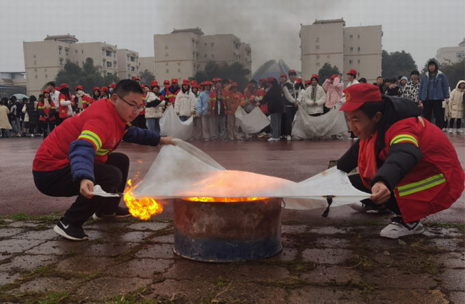 消防演练后,我校师生参加了“穿着灭火防护服”“系逃生绳结”“烟道逃生”和“油盆灭火”消防知识培训,选派8支师生代表队参与了消防技能竞技。