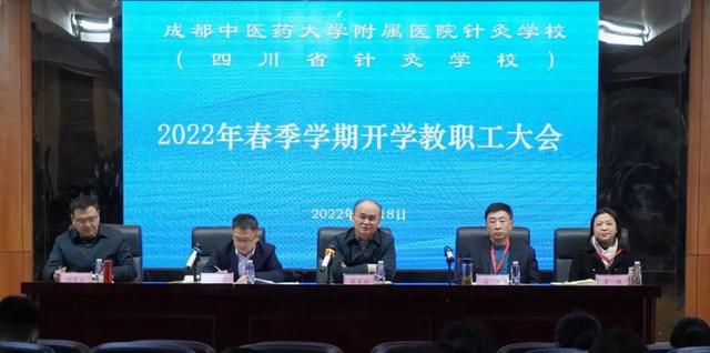 会上,学校党委书记张美林作新学期工作要求,他号召全体教职工踔厉奋发、赓续前行,持续推进学校党的建设工程、中医药文化传承创新工程、职业教育“三教”改革工程、示范专业建设工程、新校区建设工程、高职学院创建工程、职业能力建设工程及学校安全建设工程“八大工程”。同时希望全体教师为学要有不畏浮云遮望眼的大视野;为人要有一蓑烟雨任平生的大境界;为事要有不破楼兰终不还的大意志;为管要有风物长宜放眼量的大格局;为师要有春蚕到死丝方尽,蜡炬成灰泪始干的大奉献;为医要有安得广厦千万间,大庇天下寒士俱欢颜的大仁心,以此全面推进学校职业教育高质量发展,助推中医药强省建设和健康四川、健康中国建设,以优异的成绩迎接党的二十大召开。