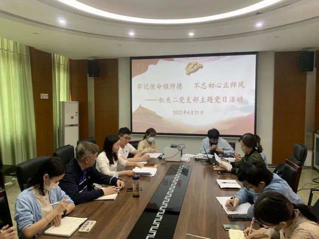 根据学校党委统一安排部署,按照师德师风建设的相关要求,机关二党支部于4月21日组织支部全体党员、预备党员、入党积极分子开展“牢记使命强师德 不忘初心正师风”主题党日活动。