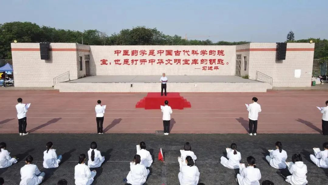 “开展‘传中医文化 迎世界大运’诵读经典主题教育活动,奏响青春向党、不负人民;立志报国、不负韶华;技能中国、复兴中华的新时代强音。弘扬劳模精神、劳动精神、工匠精神,为构建健康中国和人类健康共同体贡献省针灸人力量!” 成都中医药大学附属医院针灸学校(四川省针灸学校)党委书记、中医药文化传承工作室主持人张美林浑厚的声音响彻在校园上空。