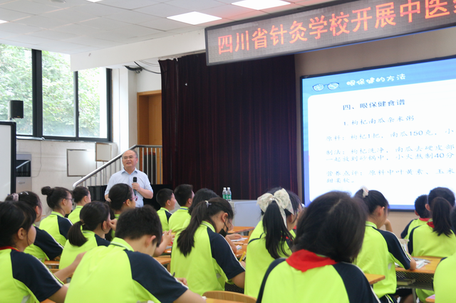 5月31日,四川省针灸学校联合成都市锦里小学开展“中医药文化”主题教育活动。学校党委书记、中医药文化传承工作室主持人张美林以“传承中医药文化,探索“睛”彩世界”为题给锦里小学师生讲授“中医药文化思政大课”。