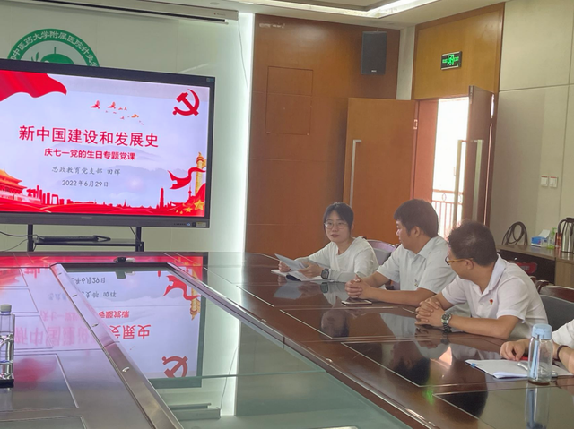 支部书记田辉作《新中国建设和发展史》主题党课。新中国成立以来经历了三段重要历史进程,从开启新纪元到开辟新时期,从进入新世纪到开创新时代,101年的砥砺奋进,中国人民建设社会主义现代化强国不断取得成功,中华民族迎来了从站起来、富起来到强起来的伟大飞跃。作为新时代的青年教师,我们必将接好手中的接力棒,不忘初心,接续奋斗,为学校的建设和发展交出满意的答卷。