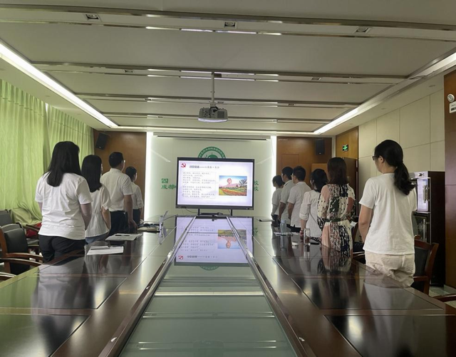 党课结束后大家集体朗诵毛主席诗词《沁园春·长沙》,感悟青年毛泽东的豪情壮志,体会革命道路的艰难曲折以及今天幸福生活的来之不易,激发爱国主义情怀,提升支部同志向心力、凝聚力。