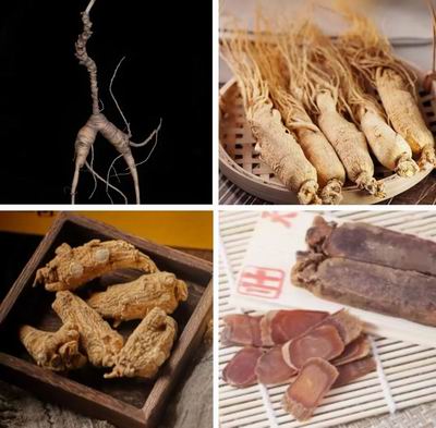 注:红参和生晒参都是人参,因炮制不同而外观颜色不一样。