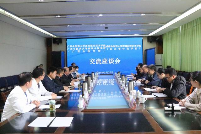 3月26日上午,广西中医药大学高等职业技术学院、广西中医药大学附设中医学校(广西中医学校)院(校)长刘竑清一行8人来校调研交流。学校党委书记张美林,党委副书记、纪委书记黄玲玲及相关部门、教研室负责人参加座谈会?;嵋橛裳8毙3だ钋盎鞒?。