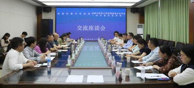 4月17日下午,成都肛肠专科医院院长杨向东、书记汪丽娜一行13人来校调研交流。学校党委书记张美林出席并讲话,学校在家校领导、相关职能部门负责人参加座谈会。会议由学校副校长李前华主持。