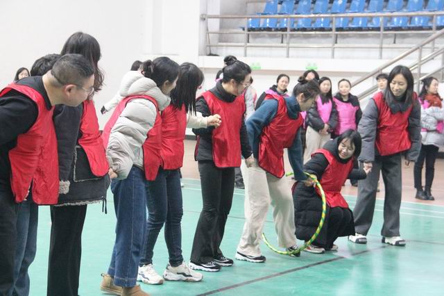 本次趣味运动会将全校教师分为8个小组,设置“团队风采展示”“同心击鼓”“一圈到底”“乒乓球拍运球”等丰富多彩的比赛项目。赛场上,加油声与欢呼声交织回荡,气氛热烈。大家相互协作、彼此鼓励,充分体现了奋进友爱的团队精神?;疃鼋私淌涞慕涣鞴低?,加深了彼此的友谊。经过激烈角逐,第三小组斩获团体第一名。活动最终在愉快、欢乐且和谐的氛围里圆满落下帷幕。