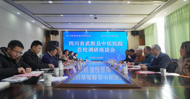 1月20日,四川省武胜县中医医院党委书记李超林一行莅临我校调研交流。学校党委书记张美林携在家校领导出席,会议由党委委员、副校长李前华主持。